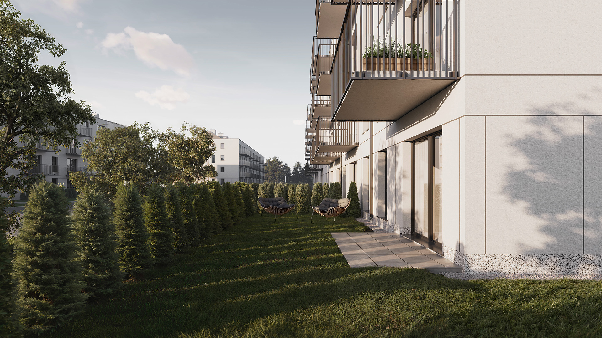 - W ramach osiedla utworzono strefę rekreacyjną z placem zabaw dla najmłodszych i zielenią wypoczynkową, by wzmacniać budowanie sąsiedzkich relacji i pobudzić aktywność wśród mieszkańców.