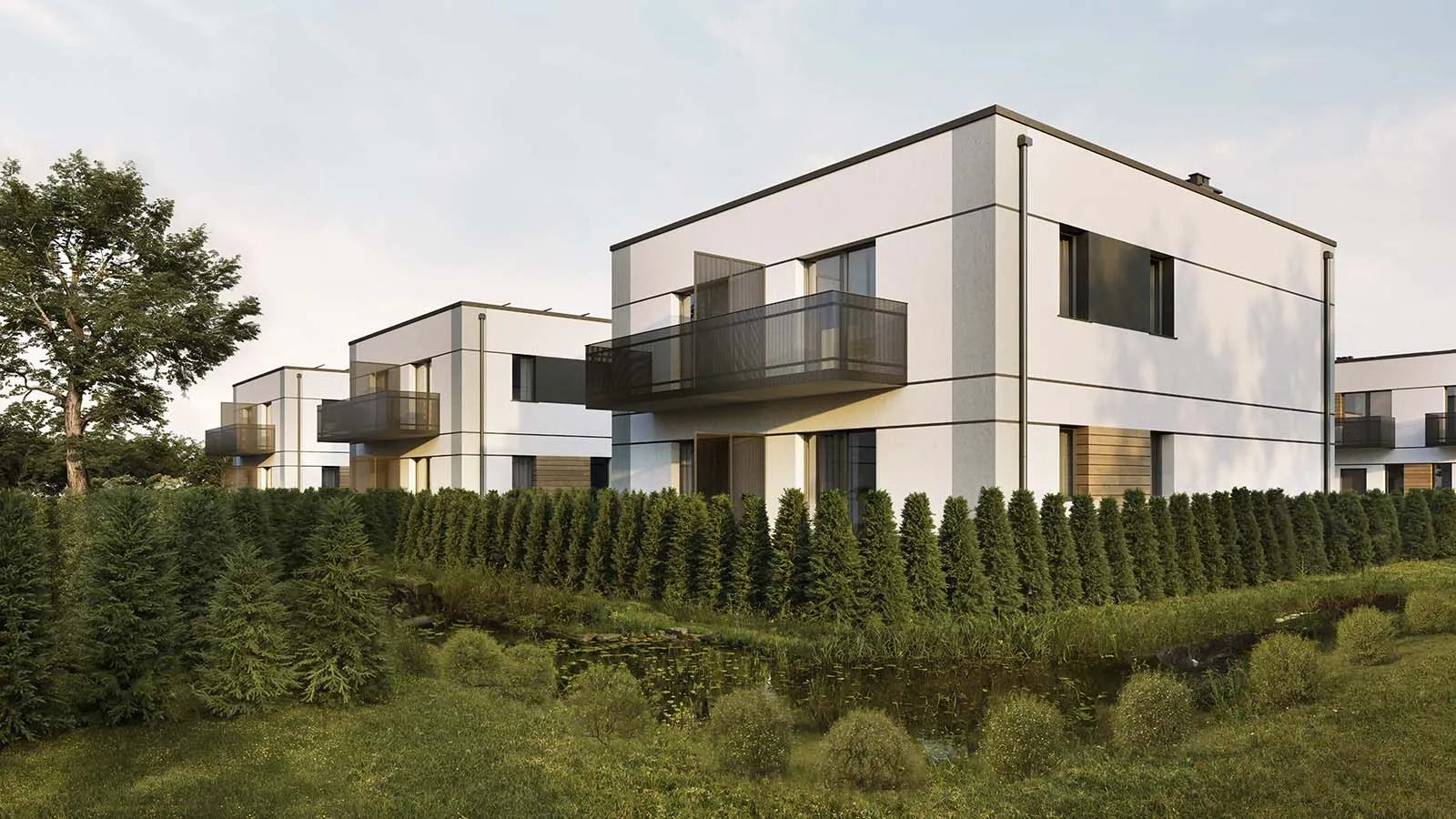 Na terenie osiedla powstanie kilkadziesiąt starannie zaplanowanych budynków wolnostojących oraz szeregowych. A dwukondygnacyjne budynki zapewnią najwyższą prywatność mieszkańcom oraz lokatorom. Dodatkowa przestrzeń plenerowa w formie nawet trzech balkonów i rozległych tarasów z zielonymi ogródkami pozwoli odetchnąć świeżym powietrzem każdego poranka.